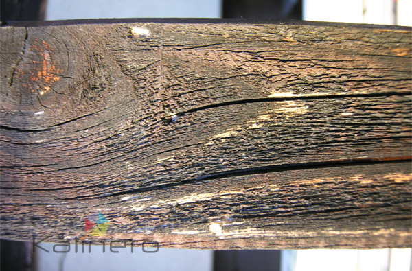 Ko je površinska zaščita dotrajana, vremenski vplivi najedajo zunanjost lesa. Prične se sušiti, nastajajo razpoke in se s časom povečujejo.