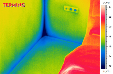 | Plesen v stanovanju je velikokrat rezultat kapilarne vlage. S termokamero lahko vidimo, kje se pojavljajo temperaturne razlike, toplotni mostovi in s tem pogoji za nastanek zidne plesni v stanovanju ali hiši. | |